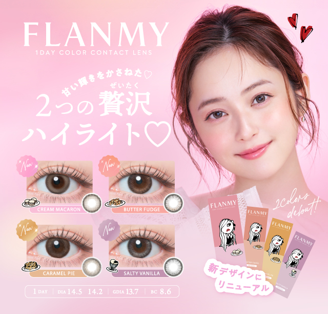 FLANMY is a Japanese brand known for soft, natural designs like “Cacao Waffle” and “Maple Chiffon.” Their contact lenses are lightweight and comfortable for all-day wear.