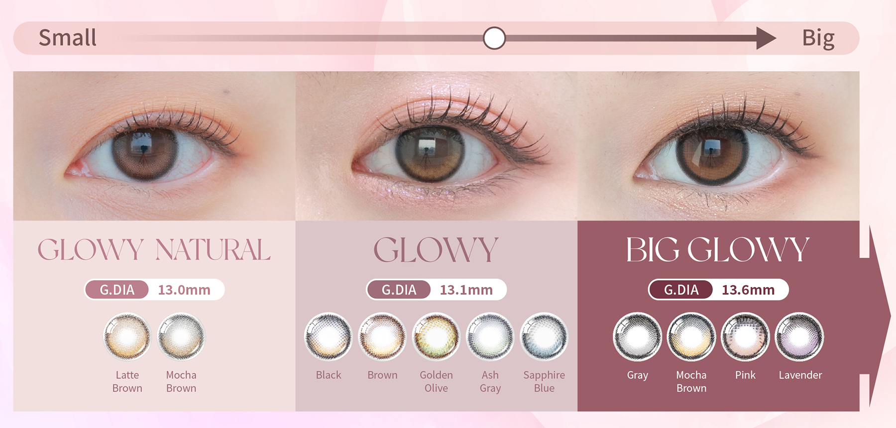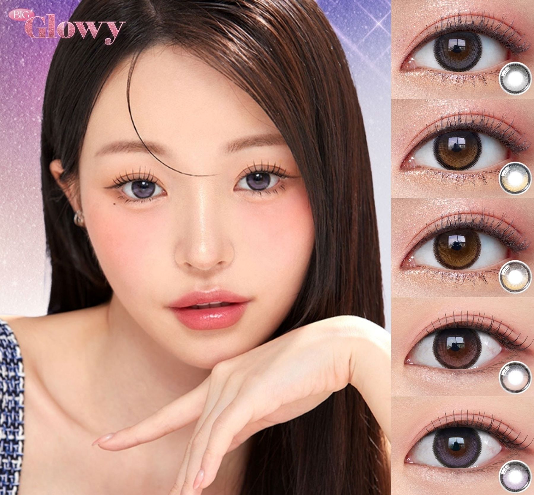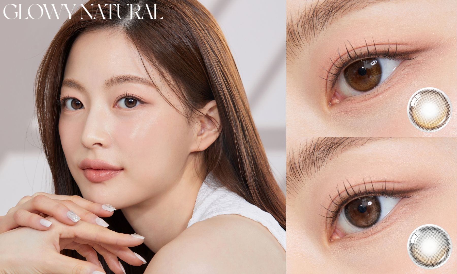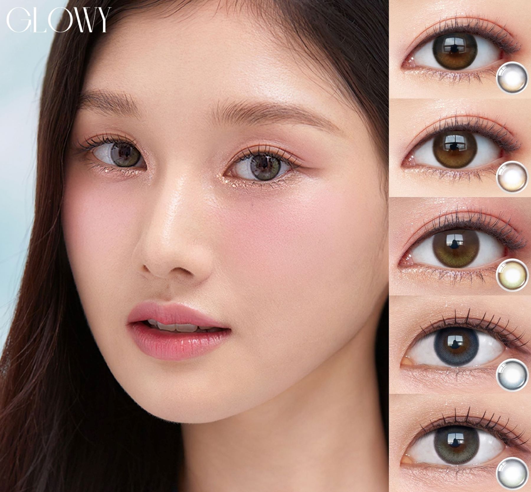 A Must-Have for Korean Color Con Enthusiasts! OLENS Glowy series features three collections designed to create a deep, radiant eye look with a water-gloss effect and unique highlight. Big Glowy Series, with a G.DIA of 13.6mm, enhances a comic-style cute big-eye. Eyelighter Glowy Series showcases a vivid, delicate outer ring that adds brilliance to the eyes. Glowy Natural Series seamlessly blend a soft outer ring with the pupil for a natural look.