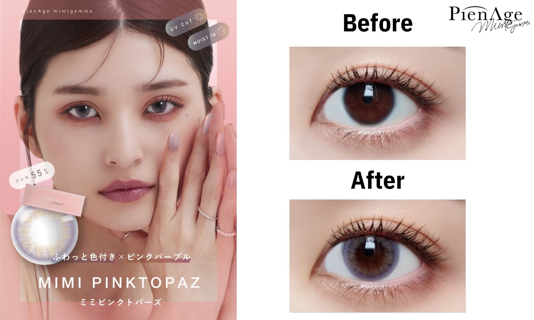 The combination of pink and purple creates a translucent effect to achieve a Japanese-style large-eye look. A must-have for daily wear!